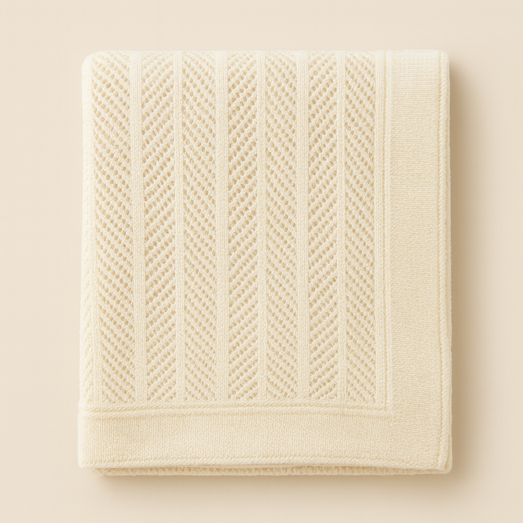 Ivory Cashmere Blanket,Bonnet and Booties Set with Arlo Soft Rattle Toy and Natural Baby Hairbrush.