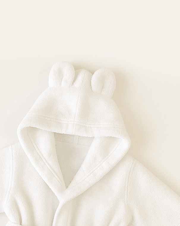 Our supersoft baby bathrobe is cute, cosy and practical. Made from 100% Hyrdrocotton, a natural material that provides extra softness without the usage of chemicals. A perfect gift that is safe and gentle against babies’ delicate skin.
